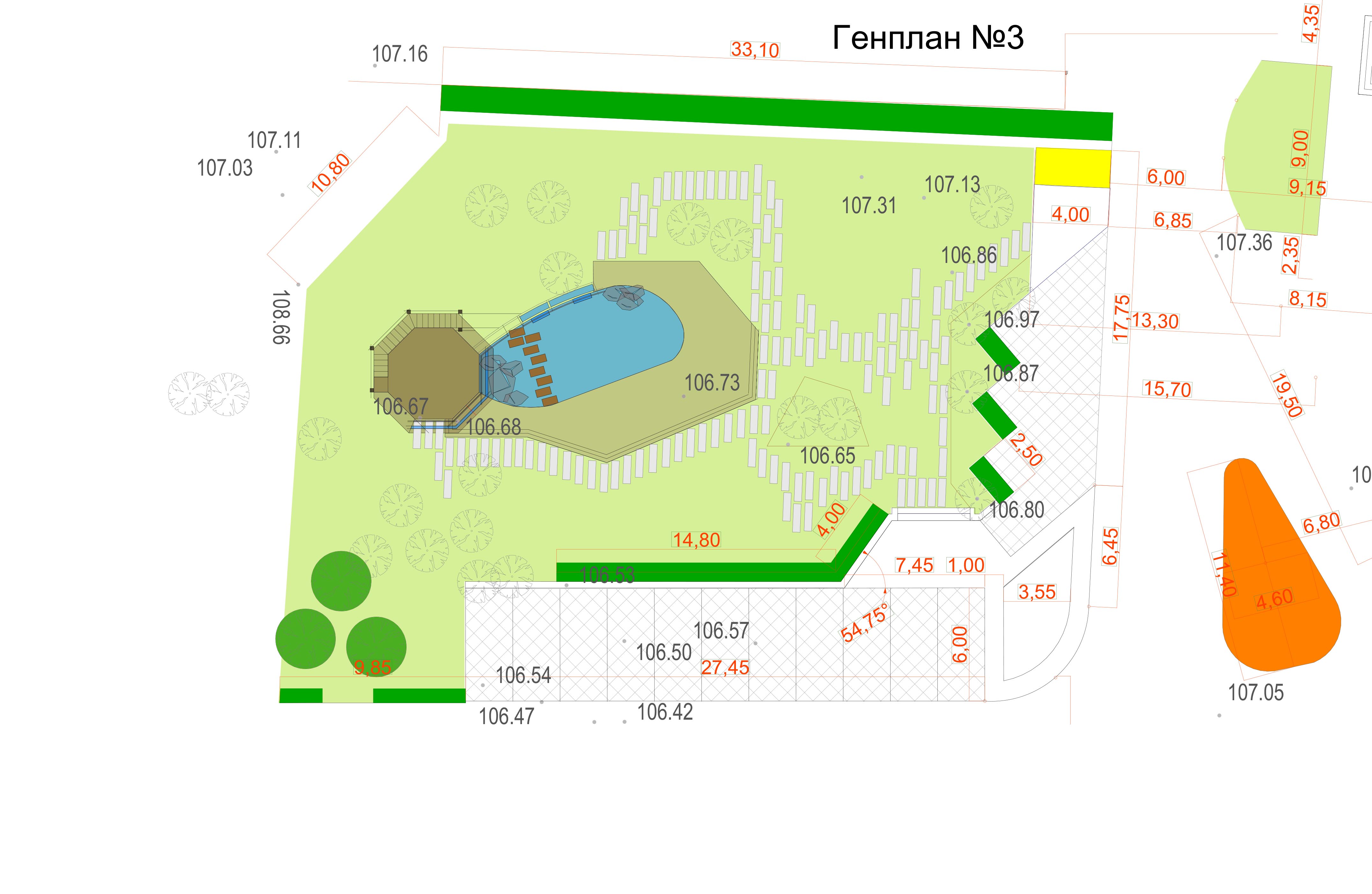 - Архитектурный план. После того, как бассейн будет закончен, следует подготовить план размещения жилых построек, формирования альтернативной площадки и интерьера большого объема.